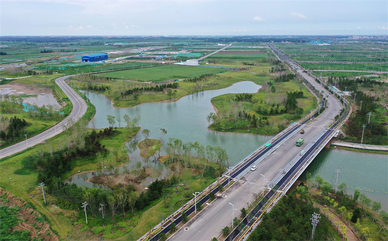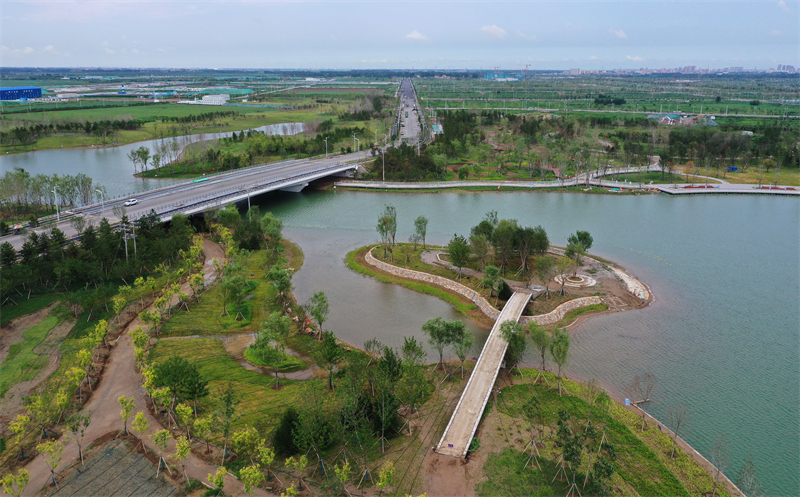 河北雄安新區啟動區中央綠谷生態廊道一角(7月28日攝,無人機照片)。