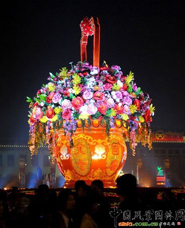 備受矚目的國慶天安門廣場立體花壇將是一個(gè)巨型花籃——整體直徑40米,高12米多。北京市園林工人將史無前例地在短短12小時(shí)內(nèi)把這個(gè)巨型花籃奉獻(xiàn)給新中國60華誕,奉獻(xiàn)給世人。