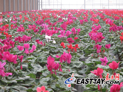 圖片說明:大棚工作人員悉心照料仙客來。