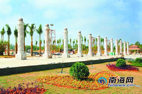 今年歡樂節的主會場將設在那大城北新區的文化公園。走進公園門口,最引人注目的是聳立在公園中心廣場上的十二根高9.6米的生肖柱。每根生肖柱由5塊花崗巖組成,上面刻有文字,記載儋州二千多年來發生的重大事件,充分展示了儋州深厚的歷史文化內涵和獨特的城市魅力。整個文化公園占地120余畝,歡樂節開幕當天,來自各地的2.3萬名嘉賓將在這里載歌載舞,共慶歡樂節。