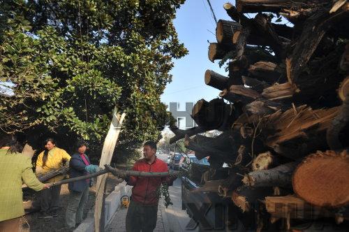 11月22日,園林工人在合肥市環城公園清理受損的樹木。
